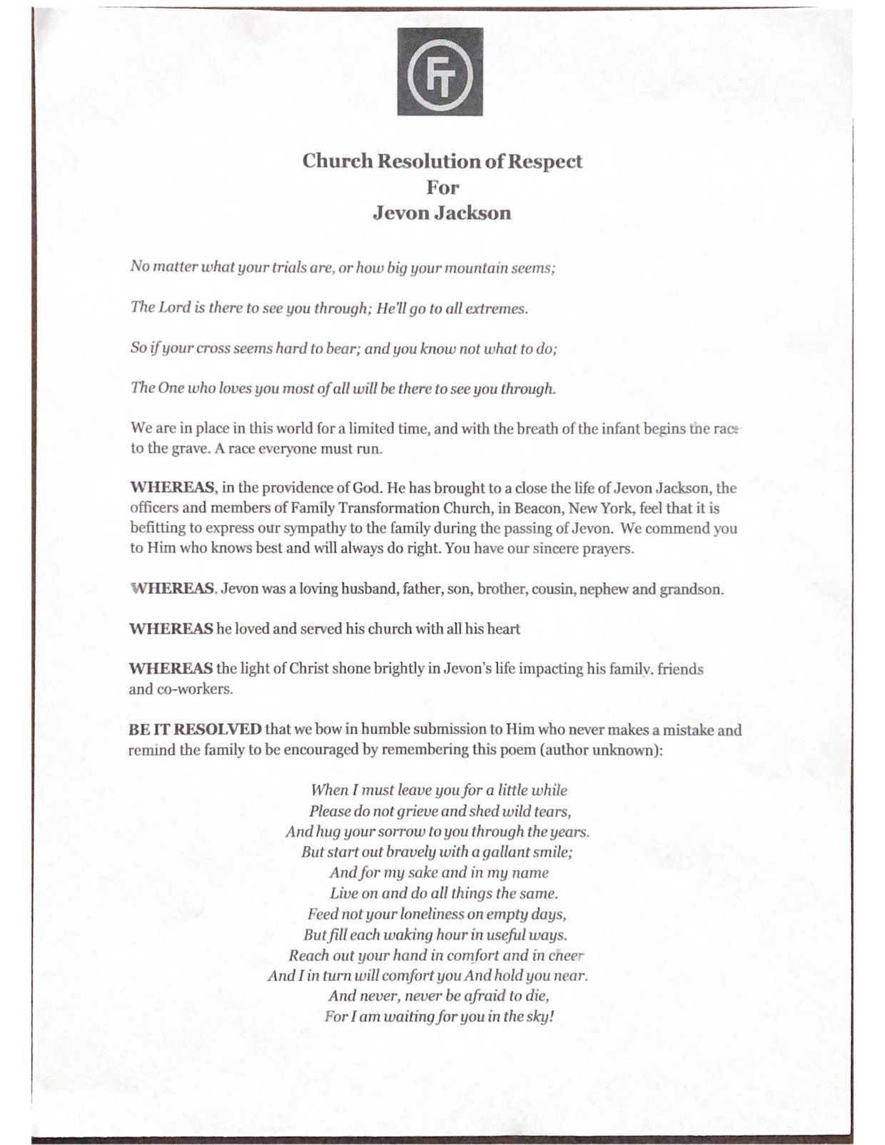 Jevon was preceded in death by his four grandparents (Dorothy Dubose, James Freeman Jackson Sr., Riley Livingston, Thelma Livingston), and his and Natalie’s “Angel Baby”. He leaves to cherish his memory and live his legacy, his loving wife Natalie (Bethea) Jackson, his four children: Aiden Jackson, Victoria Jackson, Isabelle Jackson, Lucas Jackson, his parents: James Freeman Jackson Jr., Debra Jackson, his three siblings: Jamar Jackson (wife Dorinda Jackson), Devina Jackson, and Jeremy Jackson; In-Laws: Charles Bethea (father) Melba Bethea (mother), Tiffany Bethea (sister), Marcus Bethea (brother – wife Dwanna Bethea), nieces and nephews: Nanice Jackson, Kamaile Jackson, Lyanna Shelby, Micah Bethea, Samantha Harris, Ashley Bethea, Morgan Bethea, Regan Bethea, Joshua Polite, Prayer Assembly church family, godchildren, and a host of aunts, uncles, cousins, friends, colleagues, and students.