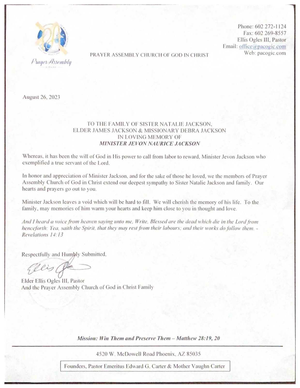 Jevon had a soft heart for the things of God and received Christ at the early age of eight. He took his salvation seriously and was very committed to living a life pleasing to God. Around the age of 14, Jevon received the Holy Ghost. He did not mind sharing that he received the Holy Ghost one day while showering. His parents and siblings can attest to this fact. Jevon loved the Lord and knew he had a calling on his life. He knew he could not compromise his faith if he wanted to live a life pleasing to God so instead of following the crowd, he took a stand and became known as “that Christian guy” in high school. At age 22, Jevon answered the call on his life and became an ordained minister with the Church of God in Christ under the leadership of Emeritus Pastor Edward G. Carter of Prayer Assembly COGIC.