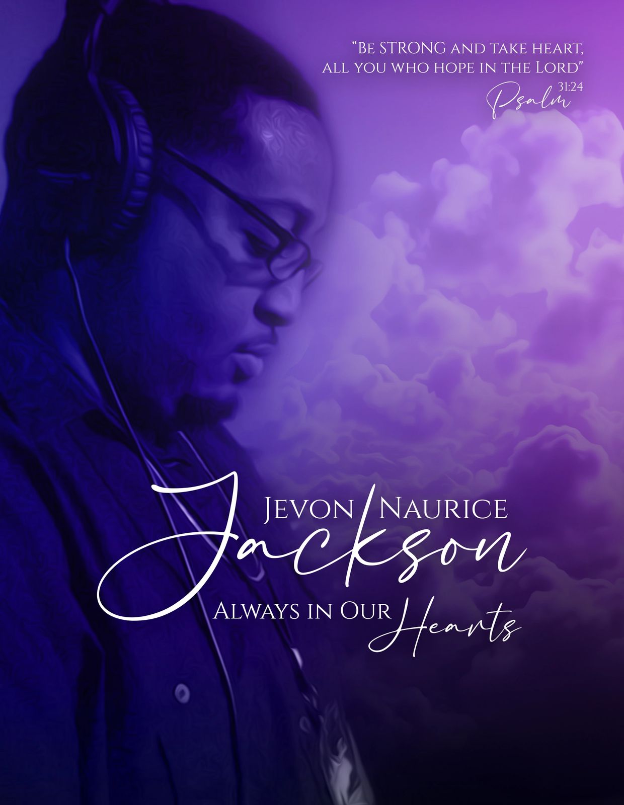 Jevon had a uniqueness all of his own. He was a humble, gentle giant. Jevon embraced his dorkiness, told corny dad jokes, had a contagious belly laugh and a great smile. But it was clear he loved God and he lived by the scripture “Be strong and take heart, all you who hope in the Lord.” (Psalm 31:24).